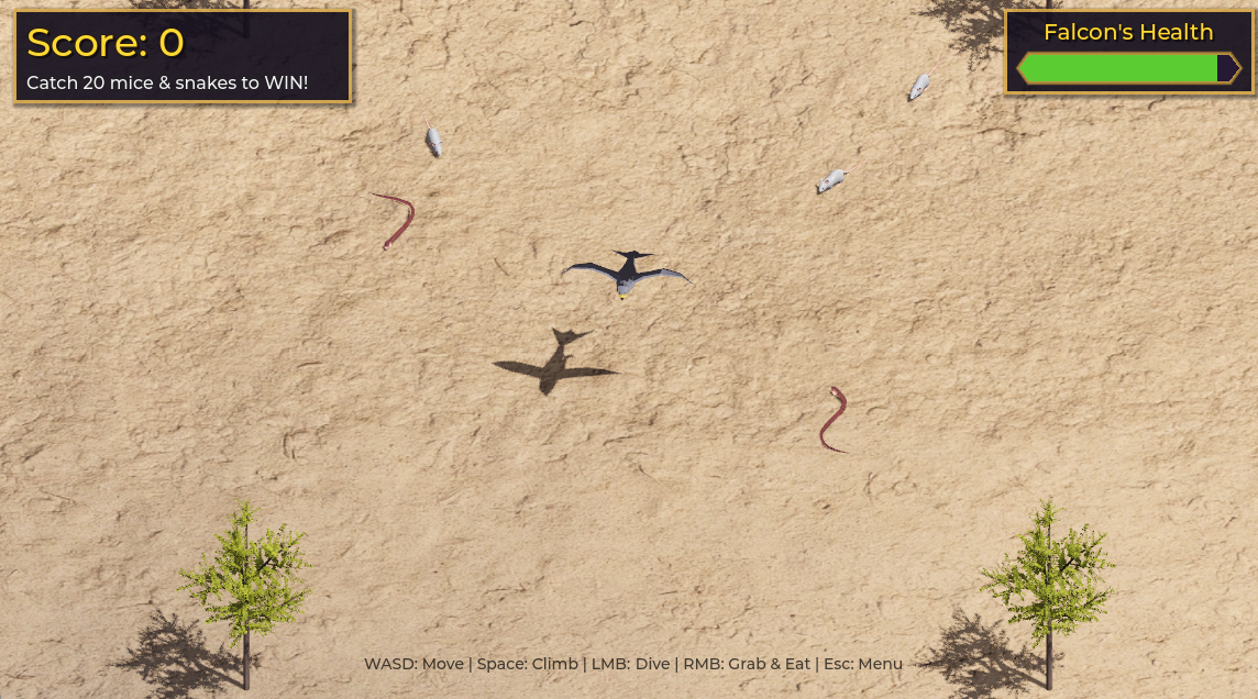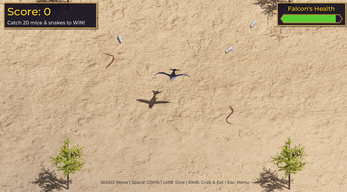 Our game is inspired by UAE culture and heritage, specifically falconry, a deeply rooted tradition in the region. Players embody a falcon - a symbol of strength, freedom, and precision hunting prey across the desert, reflecting the bond between nature and heritage.